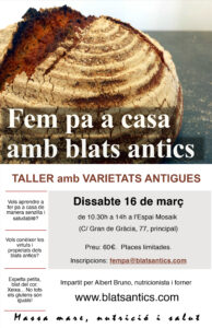 Trabajaremos la espelta pequeña (el trigo más antiguo), el trigo khorasan, la espelta o el Montjuïc u otro, dependiendo de la disponibilidad de los agricultores, pues la última cosecha, dada la sequía, ha sido especialmente mala.
